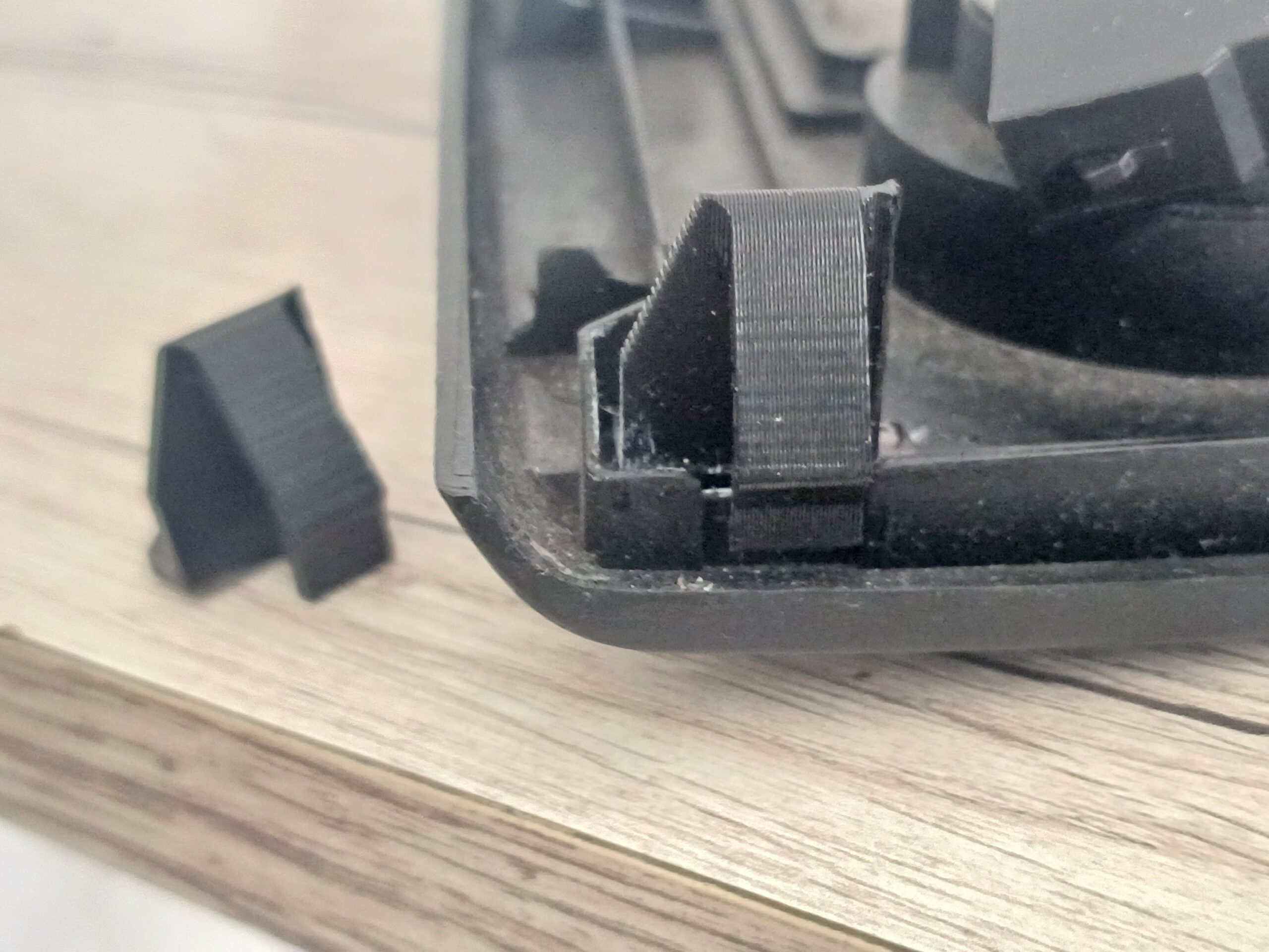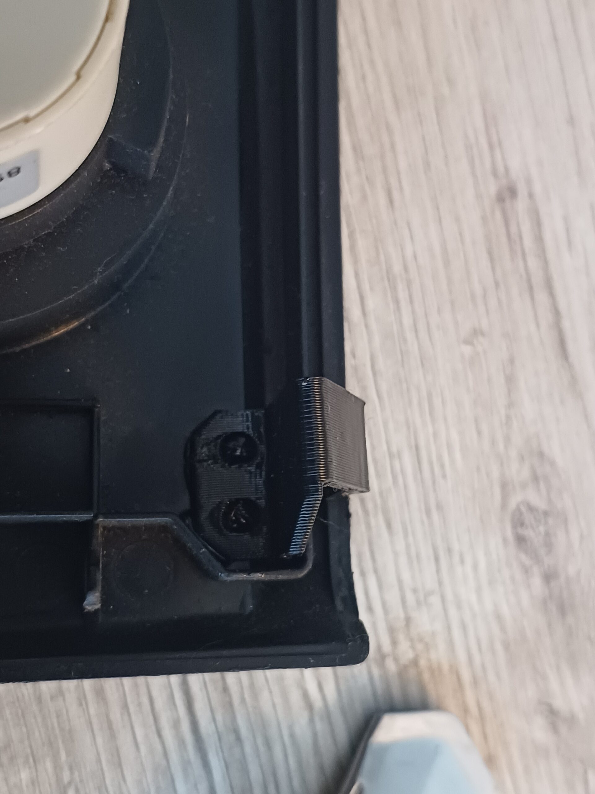 Die Kunststoff-Klammer ist entsprechend dicker konstruiert, um das „Feder-Verhalten“ der originalen Metall-Klammer nachzustellen.