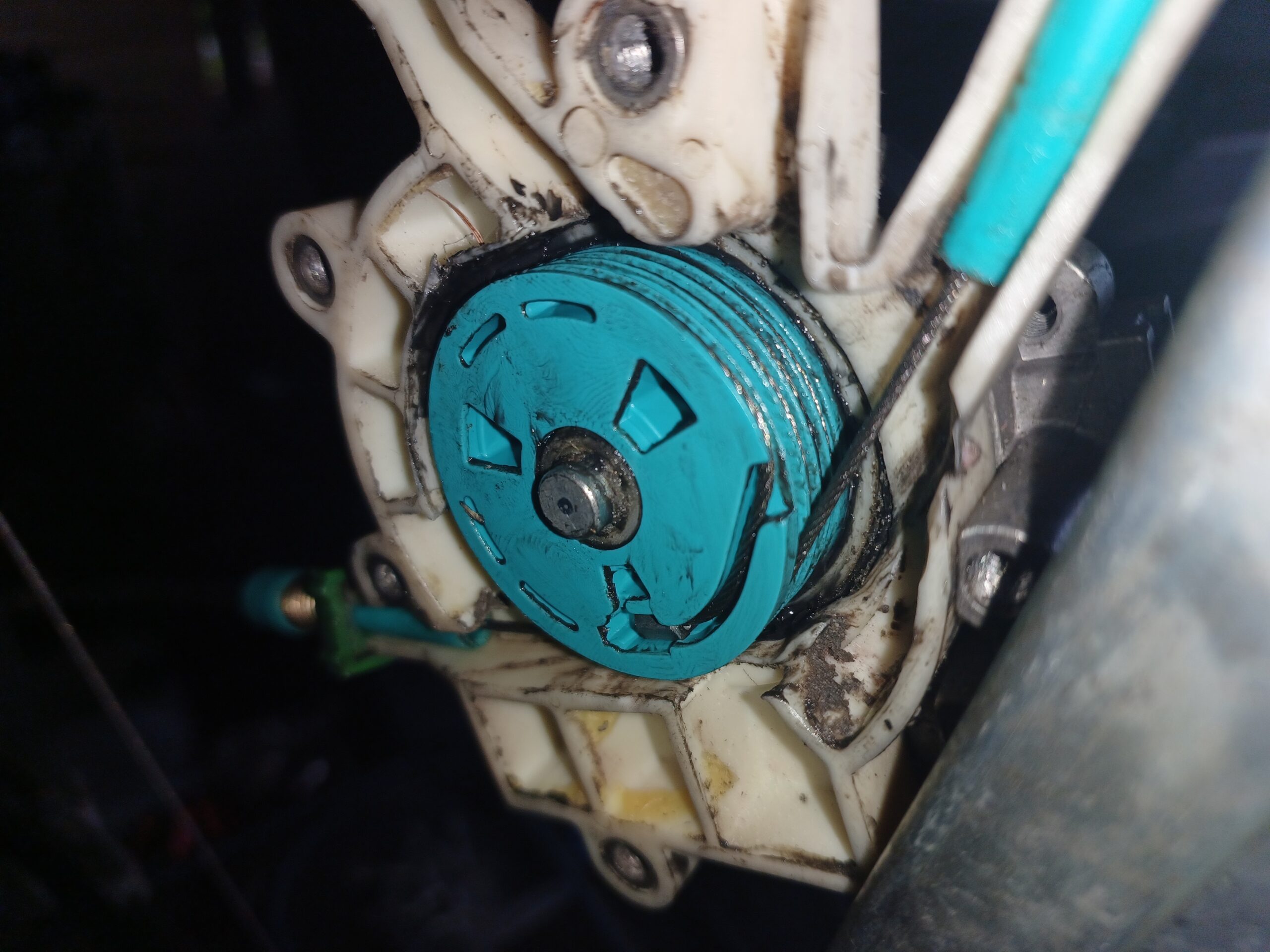 Der häufigste Defekt besteht darin, dass die Kunststoff-Spule über die Jahre und oder aufgrund mangelnder Schmierung verschleißt und die Führung für die Seilzüge aufgerieben wird.