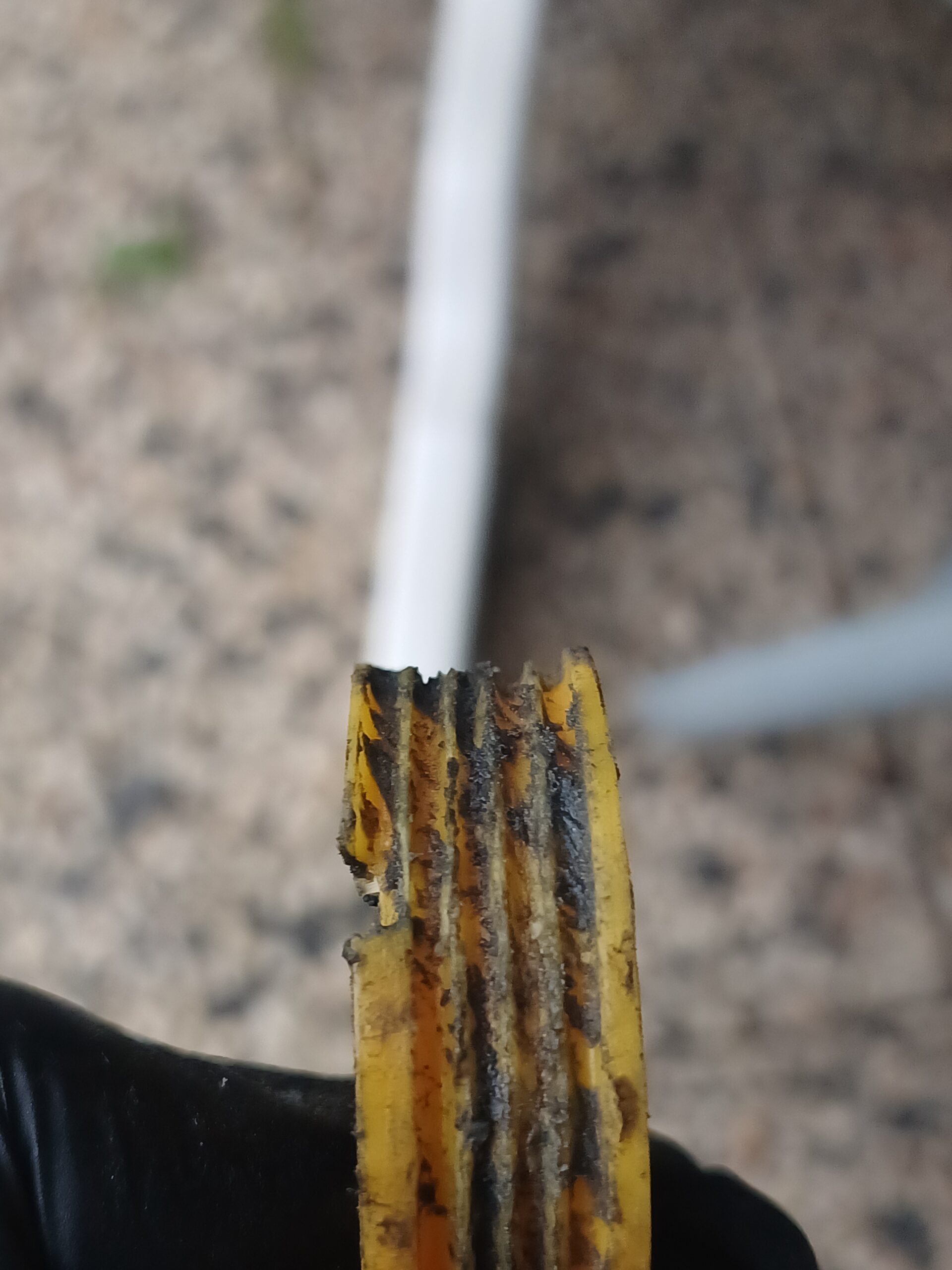 Dadurch verknoten sich die beiden Seilzüge im Antrieb (siehe Beispielfoto mit der gelben Spule). Der Defekt kündigt sich häufig mit einem lauten Knarzen/Knacken beim Hoch- und Runterfahren des Fensters an.