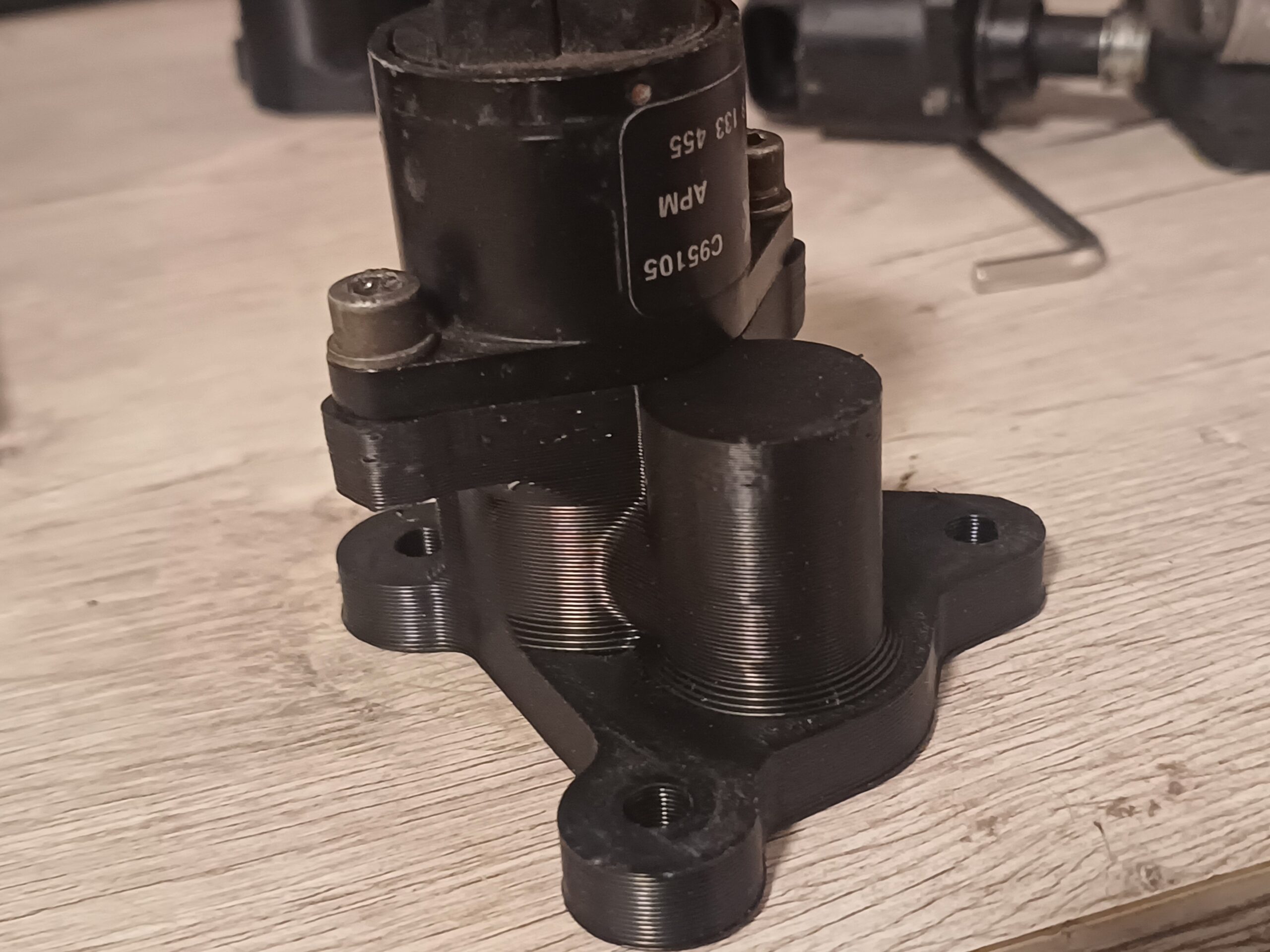 – 3D-gedruckter Adapter aus ABS/PC Kunststoff (Temperaturbeständig bis über 130°C und kraftstoff-, sowie ölbeständig)